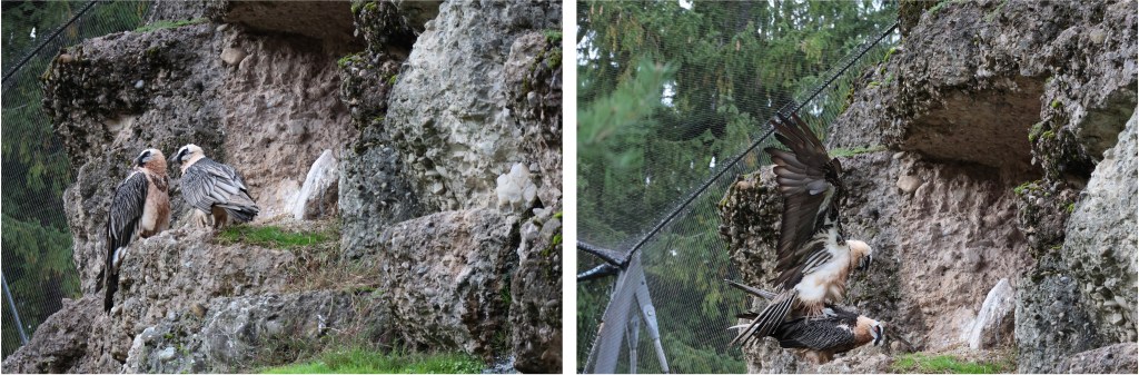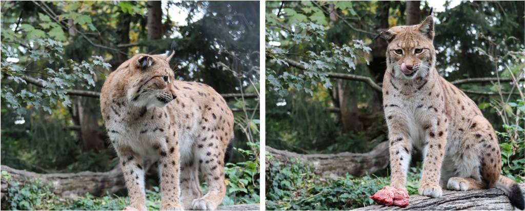 Der Bartgeier, ein beeindruckender Räuber der Lüfte, war der nächste auf meiner Liste. Mit seiner enormen Spannweite bot er ein faszinierendes Motiv. Der Luchs, mit seinem charakteristischen Fell und den spitzen Ohren, war ein weiterer Höhepunkt der Tour. Seine scheue und zurückhaltende Art machte das Fotografieren zu einem spannenden Katz-und-Maus-Spiel. Als dann die Fütterungszeit begann, kroch er aus seinem Versteck. So erwischte ich ihn mit meiner Linse.